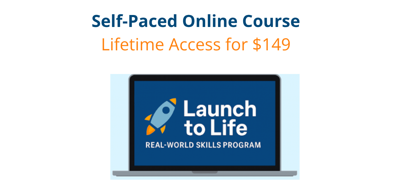 The Launch to Life Real-World Skills Program takes the guesswork out of teaching life skills. It’s organized, engaging, and designed specifically for teens and young adults. No more piecing together random YouTube videos or blog posts that may or may not be accurate, age-appropriate, or complete.